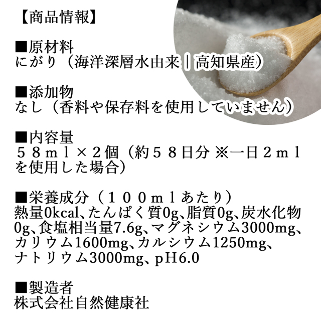 | 製品名: | 自然健康社 海水にがり58ml×2個 |