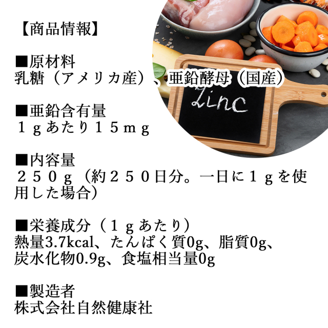 | 製品名: | 自然健康社 亜鉛酵母パウダー250g |