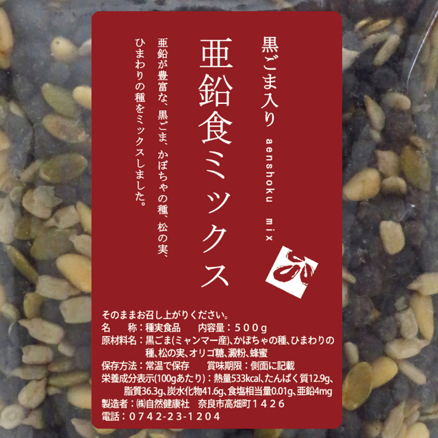 | 製品名: | 自然健康社 黒ごま入り 亜鉛食ミックス500g |