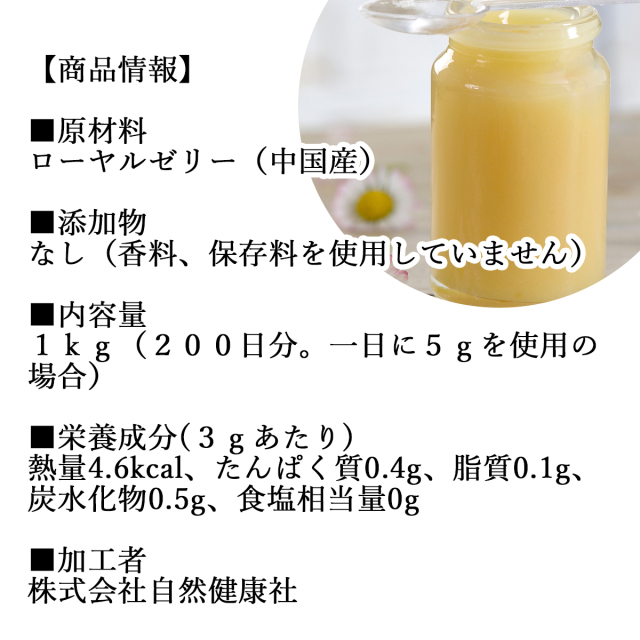 | 製品名: | 自然健康社 生ローヤルゼリー1kg |