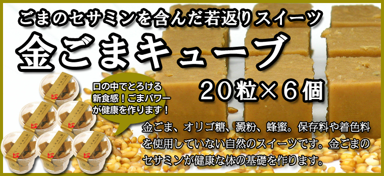若々しさを保ちたい方に「金ごまキューブ」金ごまキューブはとてもおいしく、リピート購入される方がとても多い人気の商品です。セサミン、ビタミンEなど健康成分が豊富です。