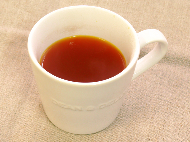 濃厚なクチナシ煎じ液の出来上がりです。1パックで出来た量をお飲みください。色は濃厚ですがさわやかな味で美味しくお飲みいただけます。-