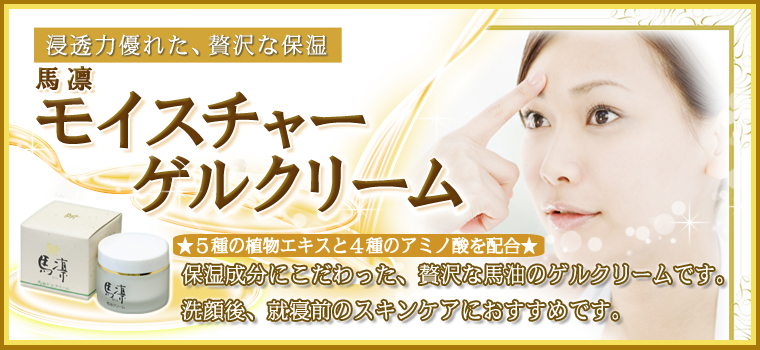 最高品質のゲルクリームをお求めの方に「モイスチャーゲル」馬凛モイスチャーゲルクリームはとても保湿性の高い商品で、毎年リピート購入される方が数多くおられます。